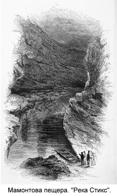 Затем, сев на небольшую плоскодонную лодку, мы медленно заскользили по реке Забвения. Это было странное, невероятно. При свете наших факелов мы смутно различали темные, смыкающиеся где-то вверху стены, которые отвесно – на 100 футов – до самого потолка, поднимались из воды. В этом призрачном свете наш молчаливый гид выглядел как посланник из царства Плутона, он стоял на носу, управляя нашим маленьким судном, медленно двигавшимся по сонной и извилистой реке. Глубокая тишина нарушалась лишь каплями воды, которые падали с потолка, и со звуком похожим на тиканье часов ударялись о поверхность реки, и всплеском воды от входящего в нее весла, предназначенного, чтобы вести нас. Когда мой спутник заиграл на своей флейте тягучую и напряженную мелодию, которая эхом отразившись в сплошной пустоте от сводов бесконечной пещеры, приобрела настолько потусторонний тембр, что я уже был почти готов увидеть, как разверзнутся стены и из-за них появятся целые толпы демонов, танцующих дьявольский танец вокруг своего адского костра. Я никогда не видел ни одного сценического эффекта или произведения искусства, которые могли бы сравниться с этим.