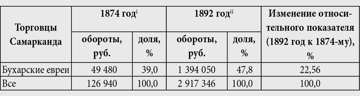[Закрыть]. На долю этих двадцати пяти семей, составлявших менее 3 % от всех бухарско-еврейских семей Самарканда, приходилось 71,7 % общего торгового оборота общины.