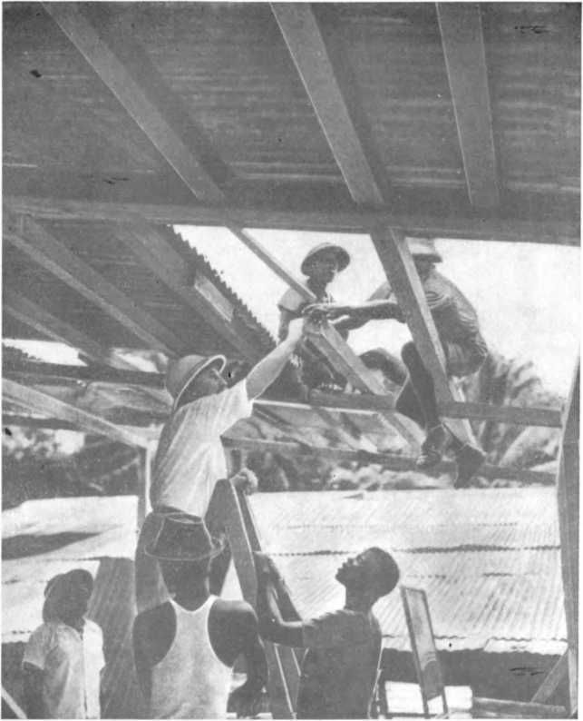 Возведение нового крытого рифленым железом барака.
