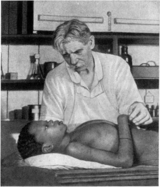 Швейцер осматривает больного.