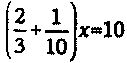 Найти x, если ( 2/ 3+ 1/ 10) x= 10.