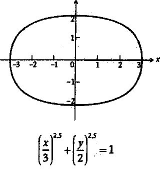 Как мы только что видели, если взять окружность и начать увеличивать nот 2 до бесконечности, окружность будет переходить в квадрат. Соответственно, если взять эллипс и начать увеличивать nот 2, эллипс все больше и больше будет приближаться к прямоугольнику. Представим себе эллипс, описываемый приведенным выше уравнением, в котором а= 3 и b =2. Пит Хейн рассудил, что значение n,при котором кривая представляет собой наилучший с эстетической точки зрения компромисс между эллиптической и прямоугольной формами, – 2,5. Соответствующая кривая показана на рисунке. Он назвал эту новую форму суперэллипсом.