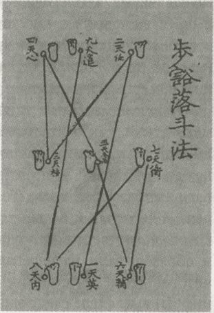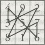 Квадрат, который, подобно данному, содержит последовательные числа начиная от 1, причем они расставлены так, что все их суммы по всем строкам, столбцам и диагоналям равны друг другу, называется «магическим». Китайцы называют этот квадрат «ло шу». (В нем все суммы по строкам, столбцам и диагоналям равны 15.) Китайцы верили, что «ло шу» символизирует внутреннюю гармонию Вселенной. Они использовали его для предсказаний будущего и отправлений религиозных обрядов. Например, если начать с 1 и провести линию, соединяющую стоящие в квадрате числа по порядку, то получится узор (см. рисунок), изображающий схему передвижения даосистского жреца по храму. Этот узор, называемый «юбу», также лежит в основе некоторых правил фэн шуй – китайской философии эстетики.