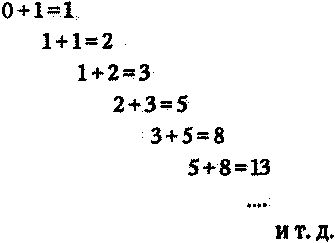 С математической точки зрения число фи интересно еще и потому, что оно связано с самой знаменитой последовательностью в математике – последовательностью Фибоначчи. Эта последовательность начинается с чисел 0 и 1, а далее каждый следующий член представляет собой сумму двух предыдущих: 0, 1, 1, 2, 3, 5, 8, 13, 21, 34, 55, 89, 144, 233, 377… Вот как получаются эти числа: