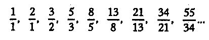 В начале XVII столетия немецкий астроном Иоганн Кеплер писал, что «как 5 относится к 8, так же, примерно, 8 относится к 13, и как 8 относится к 13, так же, примерно, 13 относится к 21». Другими словами, он обратил внимание, что отношения последовательных F-чисел близки друг к другу. Столетие спустя шотландский математик Роберт Симсон усмотрел нечто еще более невероятное. Если взять отношения последовательных F-чисел и расположить их в последовательность