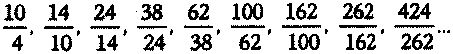 А теперь рассмотрим некую последовательность типа последовательности Фибоначчи, начинающуюся с двух случайных чисел, но продолжающуюся в соответствии с тем же правилом сложения двух последовательных членов. Начнем, скажем, с чисел 4 и 10; следующий член тогда равен 14, а идущий за ним – 24. Далее получаем: