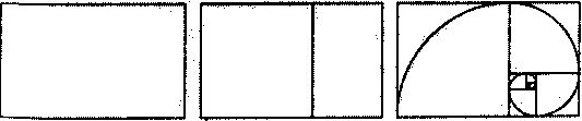 Этот прямоугольник обладает тем полезным свойством, что если мы обрежем его вертикально, так, чтобы с одной стороны получился квадрат, то оставшаяся часть также будет золотым прямоугольником. Чудесной матери чудесное дитя. Если продолжить этот процесс, появляются внуки, правнуки и т. д., до бесконечности. Теперь в самом большом квадрате нарисуем четверть окружности, поставив циркуль в правый нижний угол и проведя им дугу из одного из соседних углов в другой. Повторим то же самое во втором по величине квадрате, поставив циркуль в левый нижний угол и прочертив еще четверть окружности; затем проделаем это с последующими, все уменьшающимися квадратами. Получившаяся кривая будет приближением к логарифмической спирали.