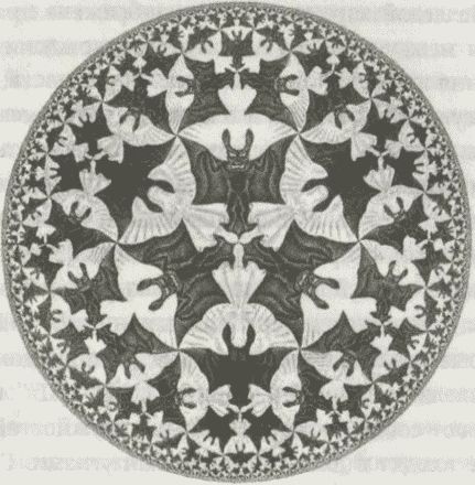 В последние десятилетия XIX века проблема представления гиперболической плоскости возбуждала многих математиков. Одна из таких попыток, предпринятая Анри Пуанкаре, захватила воображение голландского художника-графика М. К. Эшера (1898–1972). Его знаменитая серия гравюр «Предел круга» возникла как результат знакомства с предложенной французским математиком «дисковой моделью» гиперболической поверхности. На гравюре «Предел круга IV» двумерная вселенная помещена на круг (диск), где ангелы и демоны уменьшаются по мере приближения к краю. Сами ангелы и демоны, однако, и не подозревают о том, что уменьшаются, потому что по мере того, как они сами становятся меньше, то же самое происходит и с их измерительными приборами. С точки зрения обитателей диска все они сохраняют свои размеры, а их вселенная продолжается до бесконечности.