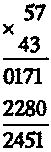Тем не менее римские числительные очень плохо приспособлены к нуждам арифметики. Давайте попробуем вычислить 57 × 43. Лучшим способом решить эту задачу является хитроумный, но медленный метод, получивший название египетского или крестьянского умножения, поскольку возник он в Древнем Египте.