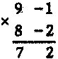 Тиртха начал с того, что показал, как умножить 9 × 8 без использования таблицы умножения. Для этого надо воспользоваться сутрой «Все из 9 и последнее из 10», хотя лишь задним числом становится ясно почему.