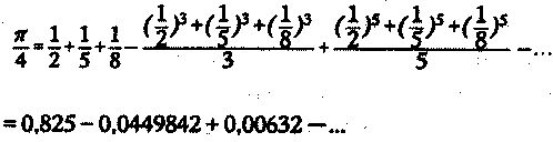 Отсюда π =4(0,825 – 0,0449842 + 0,00632 – …).