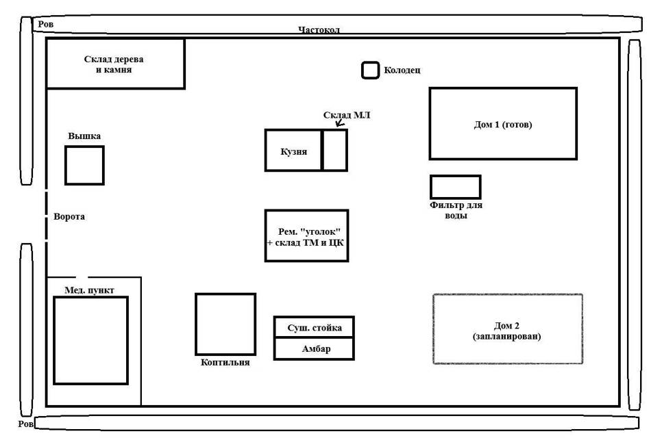 Строить точку распределения ресурсов планировалось практически сразу за вышкой, чтобы от входа в укрепления было не так далеко. Сама сортировочная площадка будет поделена на шесть зон. Самые большие – для камня и дерева, две штуки, естественно. Этого ресурса в обороте больше всего. Средняя по размеру – органика. Тут тоже поток весьма приличный, но не такой большой. Самые маленькие – для металла, причём уже высушенного, если это болотное железо, либо просто металлолома, для технического «мусора» и для целевых компонентов. Вот и всё пока. У нас ответственные за зоны хранения были назначены, они же должны были всё с сортировочной площадки разносить по своим складам и зонам хранения.