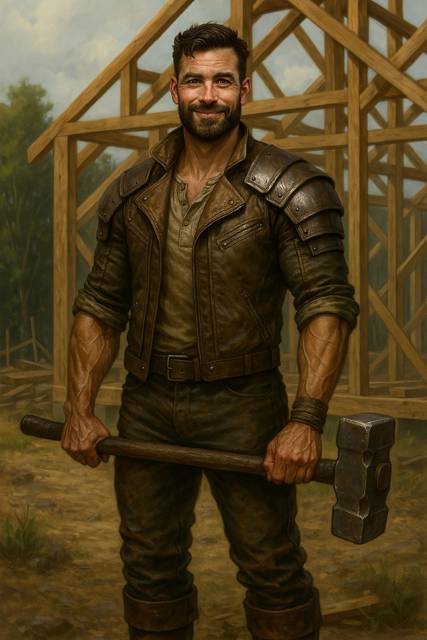 А вот наш добряк строитель явно не позировал, они его срисовали во время работ. И вот у него были видны небольшие «шероховатости». Например, тот же самый молот ровно изобразить им не удалось. Мелочи, а заметно. Но роли не играло. Зато по самому портрету становилось понятно, кто это, чем он занят и как относится к остальным. Ну а его фирменная короткая бородка смотрелась тут только лучше, особенно в сочетании с улыбкой и весёлыми глазами.