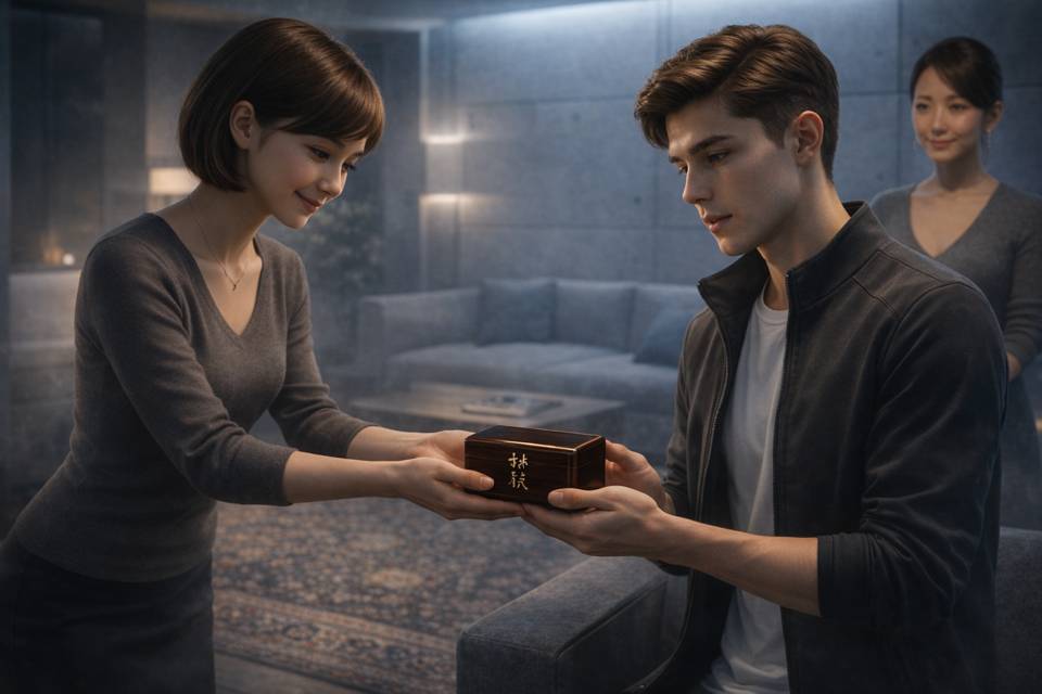 Она подошла ко мне, остановилась, правда, на расстоянии примерно в два шага, слегка наклонилась в пояс под строгие взоры мамы, протянув коробочку на раскрытых ладонях мне. Я даже опешил немного от такого. Слишком… официально, что ли. Даже строго как-то, непривычно.