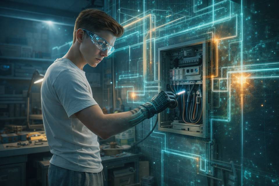 Вот тут было сложнее. В описании функции говорилось, что нужно держать в руке хотя бы один защищённый провод, чтобы вся система могла исследовать сеть помещения или устройства. Найти такие дома было проблематично, но я бы не был собой, если бы не знал, где у нас проходят провода. Так что проследовал в «ремесленный» отсек, как его называл папа, ибо это как-то завязано ещё и на Реатум, либо в мастерскую, как её называла мама. Открыл небольшой щиток, где были подключения к «силовым» предохранителям, после чего положил ладонь в перчатке на один из проводов. Перчатка вроде как прорезинена, а по физике помню, что резина – диэлектрик, то есть ток не пропускает. Так что жахнуть меня не должно было.