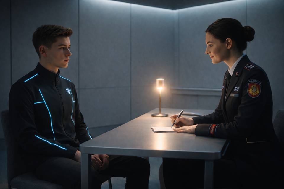 Зашли в кабинет. Обставлено всё было так, словно попал в какой-то сериал или кино. Один стол, на нем лампа, два стула. Прям клише какое-то… но стало сразу как-то неприятно, неуютно. Что же за день сегодня такой, а?
