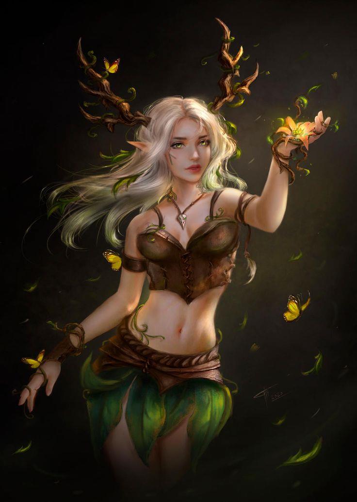 Тут что мысли читать умеют?! Этого мне только не хватало! Вздрогнув, перевел взгляд в ту сторону, откуда доносился приятный голос. У дальней стены, на изящном витом троне восседал суровый эльф, с длинными седыми волосами и такой же бородой. В короне из серебристо-голубого мха и в простом белом одеянье, он больше напоминал лешего, чем правителя лесного народа. Слева от него, стояла, невысока девушка, удивительной чистой красоты. Она была словно непорочное дитя самой природы, такая нежная и хрупкая, как дивный цветок. Босые стройные ножки, соблазнительные бедра, укрытые короткой юбкой, из мягкой кожи и материала похожего на широкие удлиненные листья какого-то растения. Хотя, может, это они и были? Тонкая талия, и упругая, но небольшая грудь, обтянутая кожаным топом на бретельках. На шее на шнурке висел черепок какой-то птицы с глазами из голубых драгоценных камней. Правую руку украшали два кожаных браслета – широкий на запястье и узкий на плече. Из светлых, будто матово сияющих волос, торчали аккуратные заостренные ушки и самые настоящие оленьи рога. О как! А с бледного лица, из-под веера густых черных ресниц, на меня смотрели пронзительные золотистые глаза. Ух, прям в самую душу! Я был просто очарован… И судя по всему, голос и умение читать мысли, принадлежали именно ей. Ну не этому же моложавому старперу, у которого золота не хватило даже на нормальную корону?