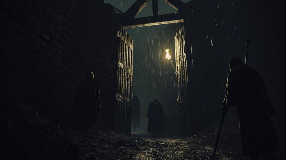 Тяжелый пласт из дерева и стали падает, словно гигантская челюсть, обрушиваясь на нижнюю часть тела. В грохоте приземлившихся ворот даже не слышен хруст костей.