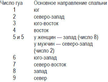 Поэкспериментируйте с направлениями и оцените ощущения, которые вы получите во время сна в каждом из перечисленных положений. Нельзя не упомянуть еще один момент. Он касается и выбора спальни, и направления сна у супругов. Чаще всего вычисление числа гуа показывает не состыковку направлений у супругов. Что хорошо для одного, может быть плохо для другого. Здесь возможны компромиссы, например, угол для кровати выбирается по направлению одного из супругов, а направление подушки по направлению другого. Но, главное – помните, что фэн-шуй – только лишь малая составляющая успеха, большая любовь, глубокая эмоциональная связь способны побороть все негативные проблемы и гармонизировать все, что угодно.