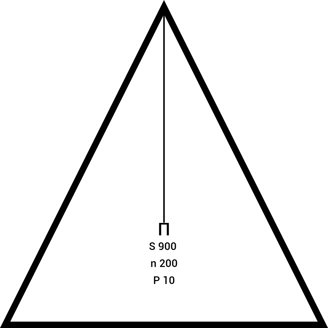 Я отломал ветку и принялся чертить основу. Подойдет стандартный треугольник. Фраза-ключ, поток силы к вершине, а теперь основные данные.