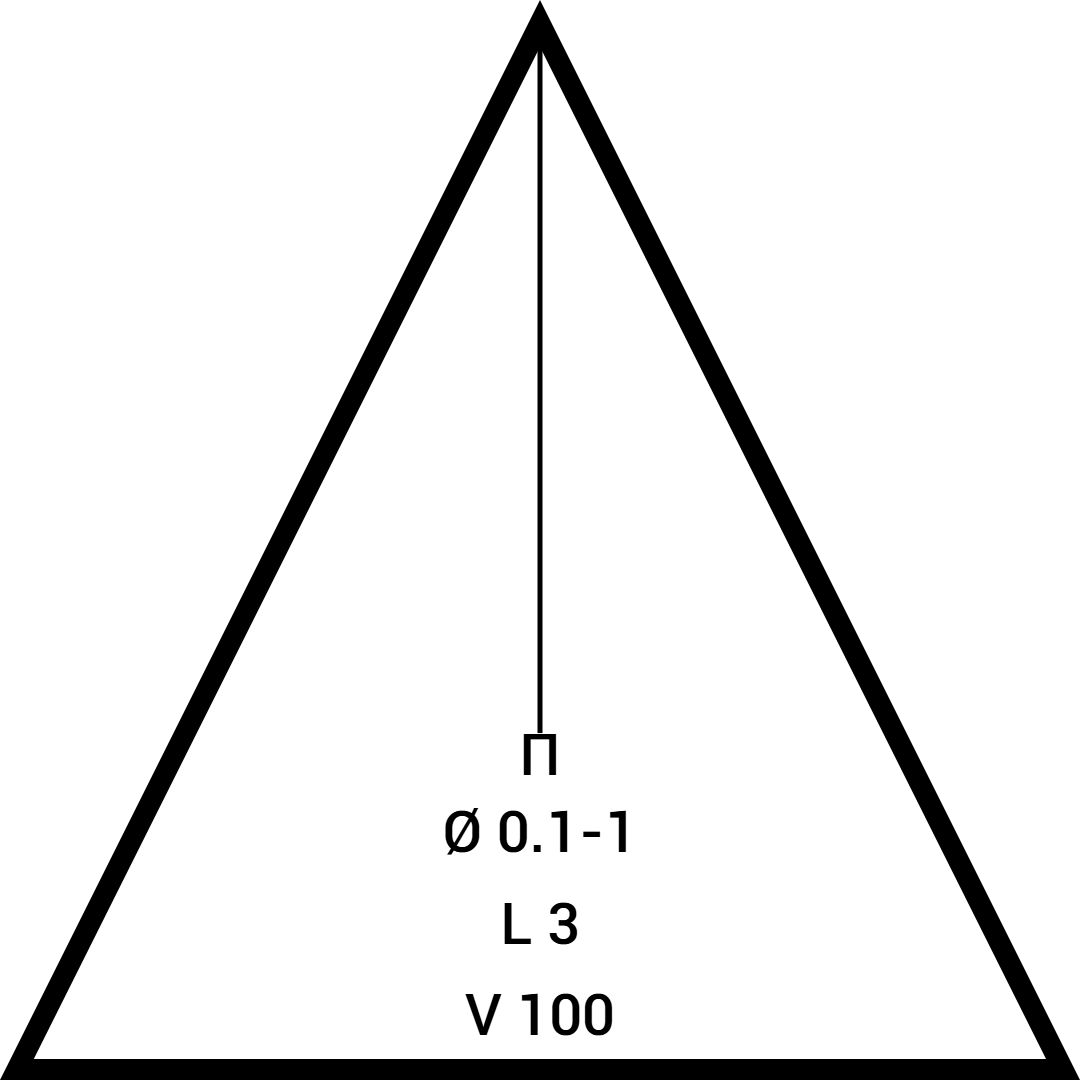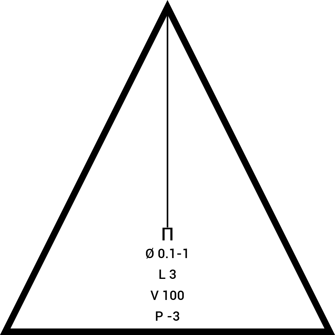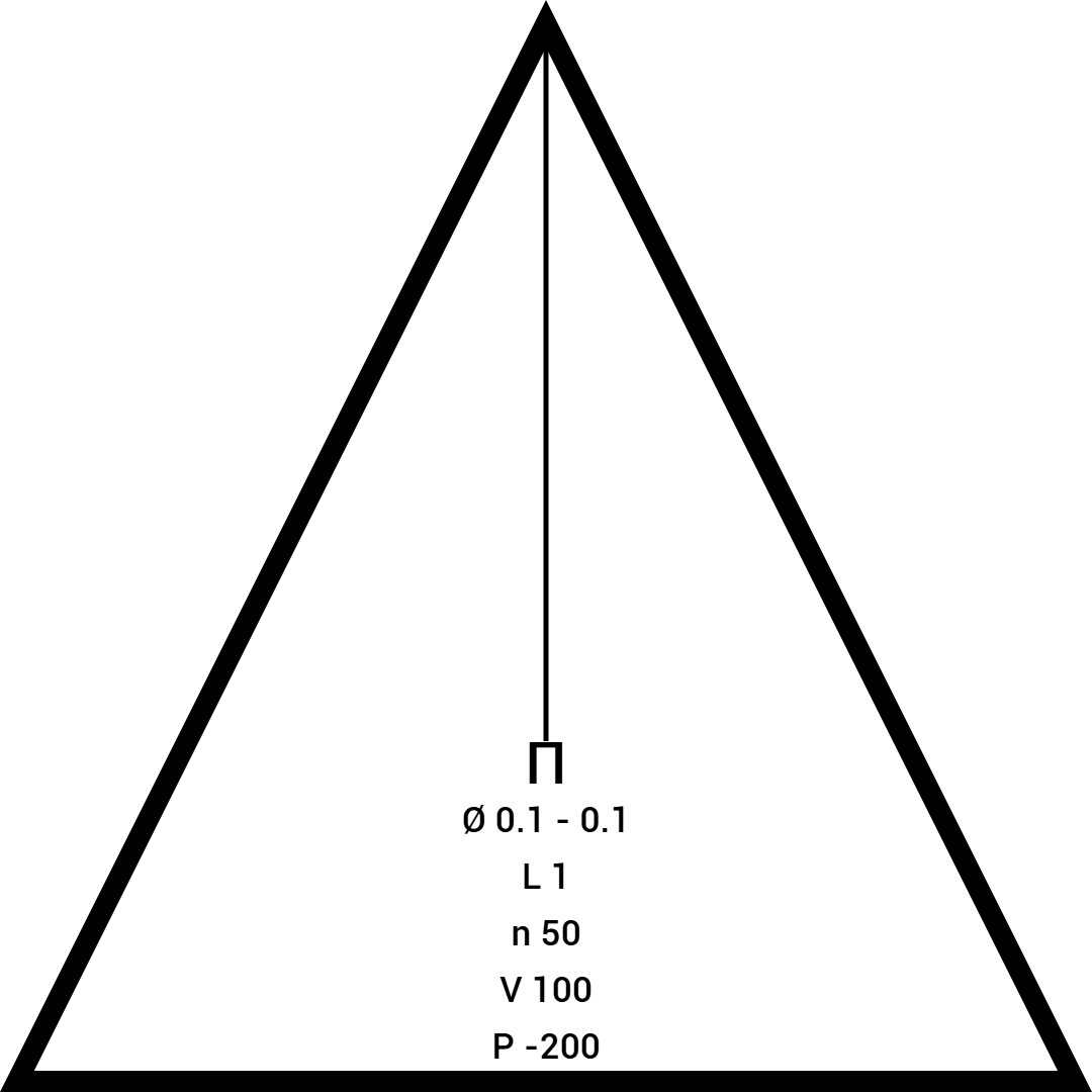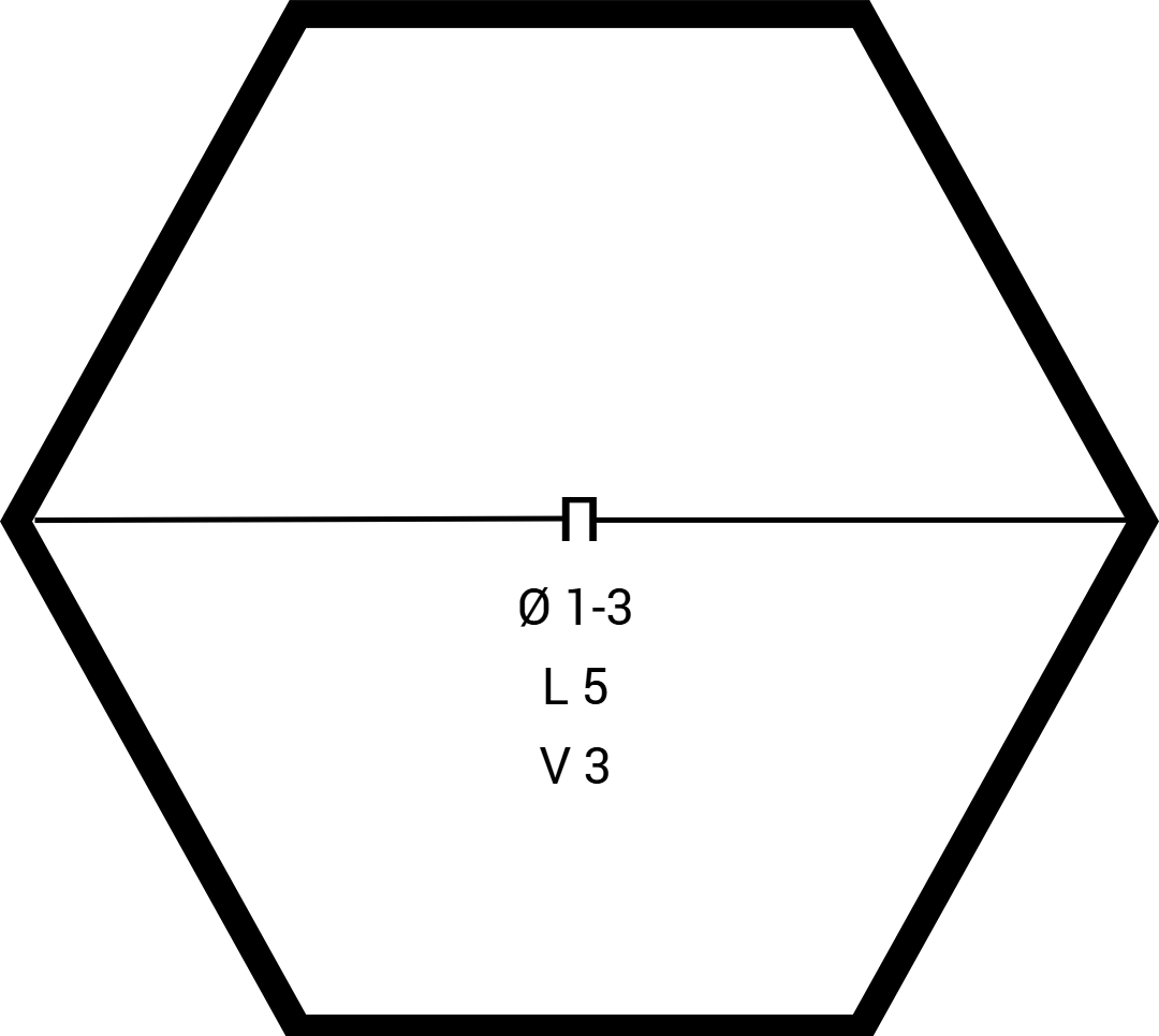 Основой стал многоугольник. От ключа фразы в разные стороны разошлись линии. Внутрь он вписал диаметр через черточку: один и три. Длину указал – пять. Скорость – три.