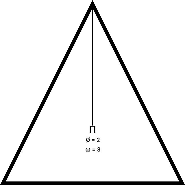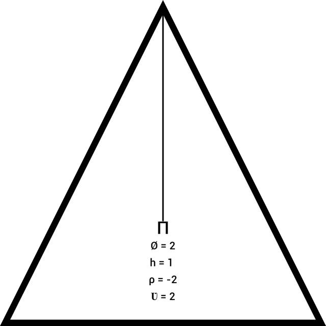 Парень начал чертить черным «мелом» на доске. Формула выглядела простой – треугольник, ключ-фраза с потоком в центр, площадь одна десятая и высота – два.