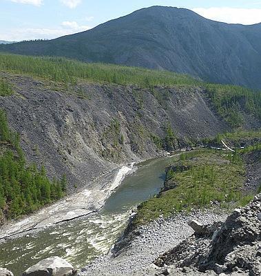 Пока вода закипала, осмотрелся. Красиво тут невероятно. С перевала открываются величественные горы, между которыми петляет Восточная Хандыга. Вид такой, словно здесь когда-то на Землю ступили боги и до сих пор людям тут лучше не появляться. Внизу, через ручеек словно ниточка переброшена, хотя я знаю – там мост метров пять шириной, подвешенный над бешено летящей рекой, сдавленной между береговыми обрывами. Там внизу такой рев, что разговаривать невозможно – только перекрикиваться. Попади в поток, и выплыть уже не удастся, как бы ты не был подготовлен. Я знаю, я спускался. А с перевала даже шума не слышно.