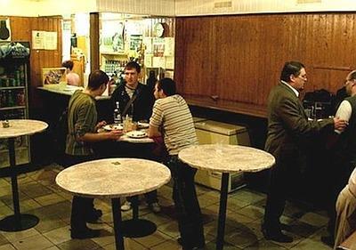 Советская пивнушка со стоячими столиками, современный вариант, но столики аутентичные