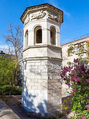 За музеем свернули, направившись к скверу у памятника Ленину. Давно хотел посмотреть Башню Ветров, только раньше до нее все дойти не получалось. Она совсем небольшая, но казалась древней, хотя это и не так – ее построили только в 19 веке по образцу такой же башни в Афинах, а назвали так из-за аллегорического изображения ветров вверху каждой из восьми граней строения. «Надо знать заклинание. Оно написано на черной плите, на Башне Ветров. Есть такая башня в Пустом Городе» всплыло в памяти. Интересно, откуда это?