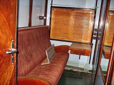 Помещение оказалось даже меньше железнодорожного купе, но оборудовано оказалось куда лучше. Внутри узенький мягкий диванчик с высокой спинкой, платяной шкаф с большим зеркалом, миниатюрный подвесной столик. Что хорошо – рукомойник в каюте тоже был, а вот туалетом придется пользоваться общим. Да, ладно, не привыкать, в общежитии то же самое, только там и умывальник тоже в туалете. Окно выходит прямо на прогулочную палубу, но его можно закрыть изнутри ставнями, набранными из деревянных реек как жалюзи – свет внутрь проникает, а снаружи, что делается в каюте, не видно. В целом вполне уютно.