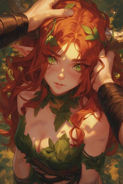 Я сделал шаг, как вдруг путь мне преградила девушка. Вместо одежды на ней были листья, будто растущие на ее теле, копна рыжих волос и много веснушек по всему телу.