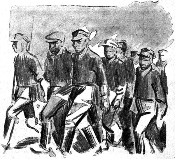 [Закрыть]. Снова собираются. Тяжело кряхтит снежное поле. Здорово ему сегодня досталось от крепких каблуков бойцов.