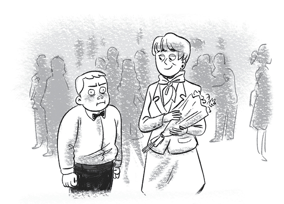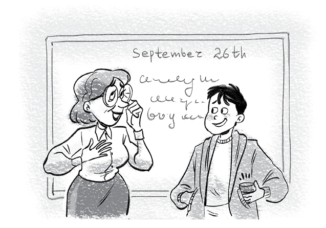 Наутро наступает День учителя. Все собираются в конференц-зале. Вручают цветы любимым педагогам. Я лично охапку роз принёс Тамаре Борисовне (это и была хитрая уловка наших родителей, как вы понимаете). Так она и сама порозовела от удовольствия, как цветок.