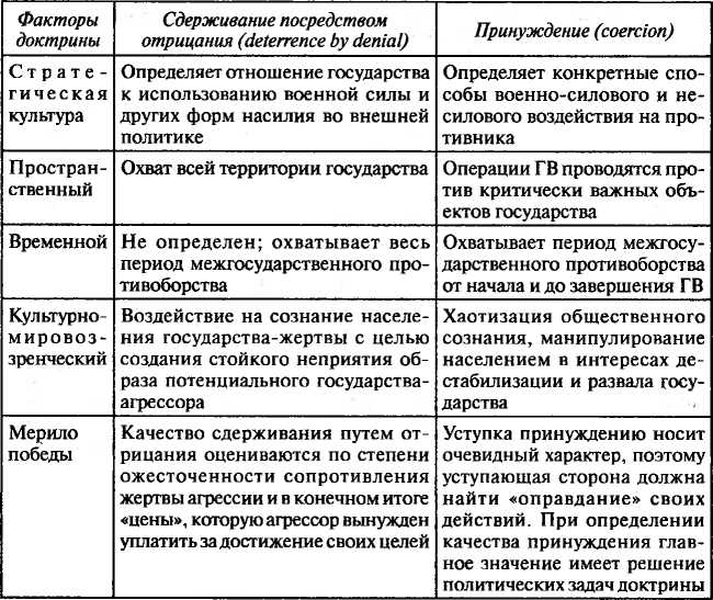 Эти доктрины, получившие названия доктрин «Принуждения» и «Сдерживания посредством отрицания», выступают в качестве важных инструментов ГВ как новой формы межгосударственного противоборства.