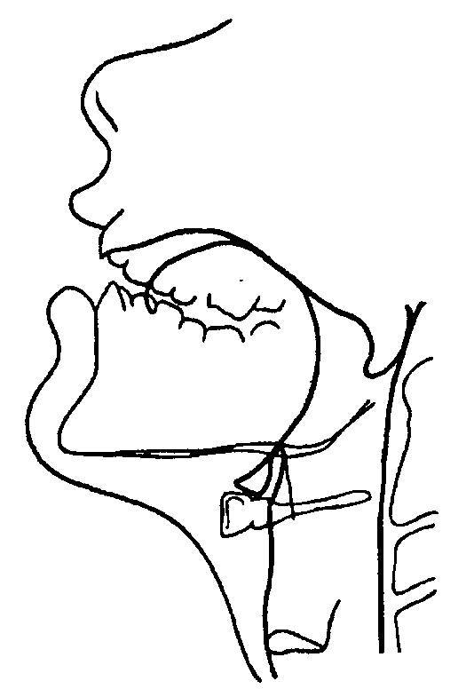 Рентгеновские лучи проникают через мягкие ткани хотя и сохраняют их в виде мягких контуров (губы, тело языка мягкое небо); костные и хрящевые органы вырисовываются более отчетливо. Для уточнения контуров необходимо наносить раствором бария мазок на губы (если губная артикуляция является объектом исследования) и ленточку (типа стоп–линий) по центру спинки языка (покрытие всей поверхности языка раствором бария не содействует четкости результатов).