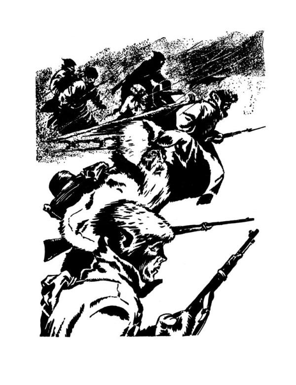 Я бежал рядом с Ольгой. Кажется, она меня не узнала в этой страшной огненной кутерьме. И вдруг остановилась, словно наткнулась на какую-то невидимую стену. Маузер выронила, потом качнулась вперед, будто хотела его поднять, и упала в снег… И такой болью меня обожгло, словно не ей, а мне в грудь вонзилась белогвардейская пуля. Но злость во мне закипела такая, что рванулся я вперед, ничего вокруг не разбирая. Только штыком колю, бью прикладом по вражеским плечам, по головам, по чему попадет…
