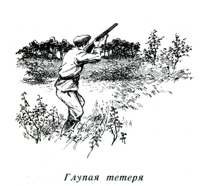 Как следует прицелившись, я выстрелил. Дробью сорвало листву с берёзы правее сидящей на ветке птицы. Эх, промазал! Конечно, испугавшись выстрела, тетёрка сейчас улетит… Но, к моему великому удивлению, она по-прежнему как ни в чём не бывало сидела на ветке. Только наклонила голову, словно удивляясь, отчего это с берёзы посыпались листья.