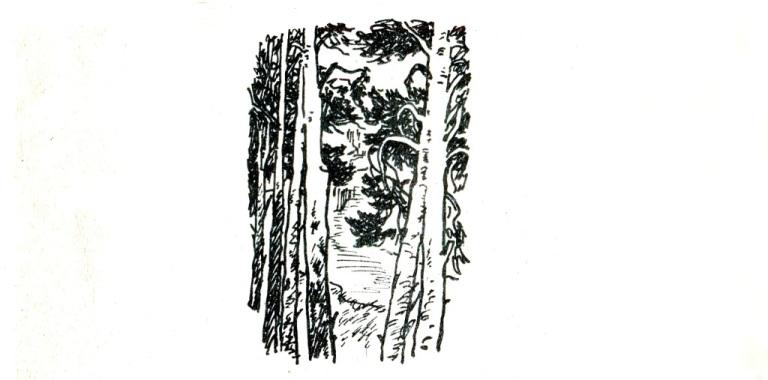 За дальним бродом в таёжной чаще набрёл я на покосившуюся избушку. Росла у порога нетоптанная трава, мутны были стёкла маленьких окошек. В дверных петлях вместо замка торчала сухая веточка.