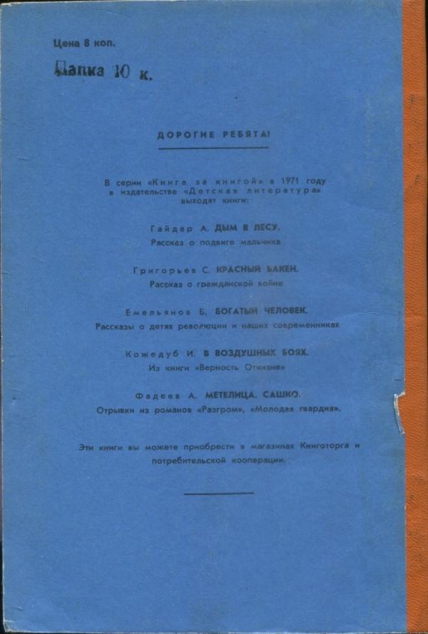 В серии «Книга за книгой» в 1971 году в издательстве «Детская литература» выходят книги:
