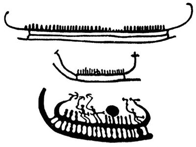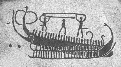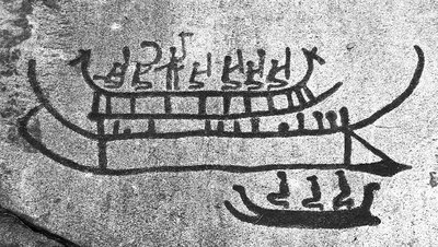 Далее, появление качественных плавсредств, способных к перемещению не только по внутренним акваториям, но и к свободному оперированию на пространствах открытого моря, также произошло достаточно рано. Наиболее древний из известных образцов – ладья из Хьёртшпринга – относится к IV в. до н. э., однако конструктивно она совпадает с многочисленными лодками позднего неолита и бронзового века [Burenhult 1973], которые в огромном количестве присутствуют на петроглифах Скандинавии. Многие из этих изображений имеют не ритуально-мифологический, а вполне реалистический характер (возможно, отчасти будучи и исторической записью), воспроизводя либо заморский рейд, либо морское сражение двух флотов.