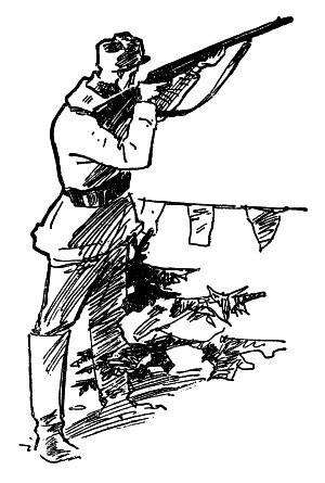Соблюдая полную тишину, быстро идем цепочкой вдоль линии флажков. Время от времени Лайвинь поднимает руку, и тогда очередной стрелок останавливается.