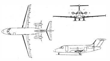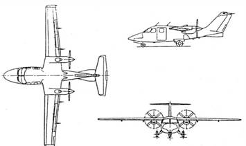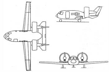Самолет представлял собою планер с низкорасположенным крылом небольшой стреловидности, с двумя турбовинтовыми двигателями с толкающими винтами, размещенными на пилонах в хвостовой части фюзеляжа со взлетной мощностью по 1500 л.с. Длина самолета -18,3м; размах крыла – 18,25 м. Взлетная масса – 9000-9500 кг.