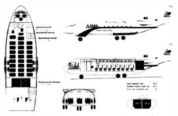 Причем груз будет размещаться не в фюзеляже, а в подвесном обтекаемом контейнере. При посадке М-90 самолет не разгружают, а просто отцепляют контейнер, а вместо него цепляют другой, уже загруженный. И можно снова от-праштяться в путь.