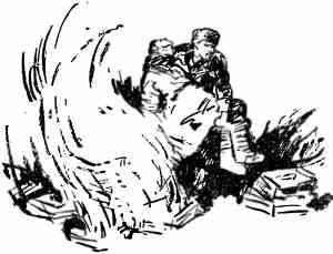 Лейтенанту показалось, что снег загорелся под ним, раненый часовой катался на горящих ящиках со снарядами, стараясь своим телом сбить пламя. На матросе тлела одежда. «Сейчас он взлетит на воздух вместе со снарядами!»