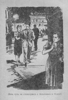 Прошло много времени. Через двадцать минут уходил последний автобус. Лена медленно, опустив голову, пошла вперед и вдруг чуть не столкнулась с Астаховым и Нонной. На Шутовой была прозрачная нейлоновая кофточка с пышным бантом, плиссированная голубая юбка, модная – величиной с ладонь – шляпка, бог знает как державшаяся на голове, и туфли на таких высоких каблуках, что у Нонны подгибались колени.