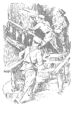 Бодягина открыла дверь на ширину цепочки, Увидев несколько человек, она перепугалась и хотела захлопнуть дверь, но капитан успел вставить ногу в образовавшуюся щель и сильно надавил плечом. Цепочка вырвалась из гнезда, и дверь распахнулась. Бодягина с криком бросилась к внутренней двери, но не успела даже войти в комнату; ее опередил Никитин. Он вбежал первый и рванулся к лестнице на мезонин. В это мгновение за дверью мезонина раздались один за другим три выстрела. Пули прошили дверь, и одна из них ранила капитана Гаева.