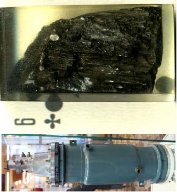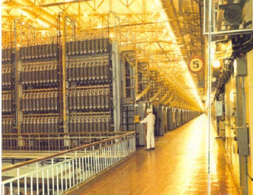 Слева вверху: уран – серебристый на свежем изломе металл, который на воздухе сначала покрывается налетом цвета спелой сливы, а затем и вовсе чернеет. Ниже: центрифуга, предназначенная для разделения газообразных гексафторидов урана. Справа: цех центрифуг на заводе под Екатеринбургом. Желающие могут прикинуть, через сколько центрифуг (ступеней разделения) проходят газы, пока будет выделен достаточно «облегченный» гексафторид. Из разделенных газов опять получают металлические ураны: «оружейный» и «отвальный»