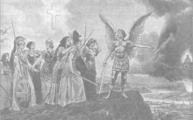 «Народы Европы, оберегайте ваши священные права». Рис. Вильгельма II, олицетворяющий поддержку России Германией