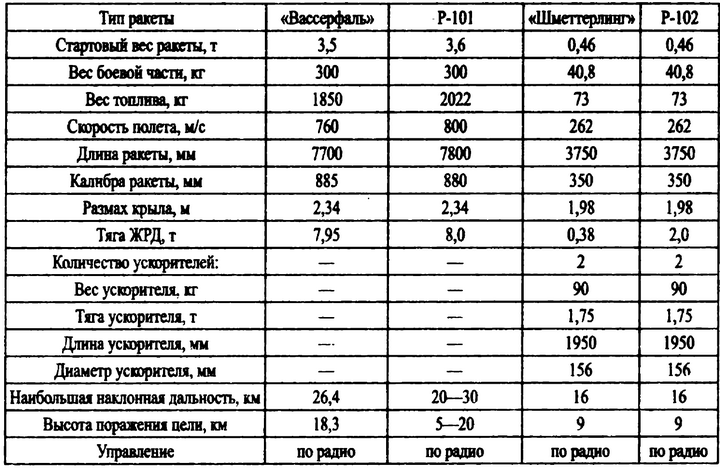Замечу, что в 1945—1947 гг. в США фирма «Дженерал электрик» на базе «Вассерфаля» создала зенитную ракету «Гермес» А-1. На вооружение она не поступала.