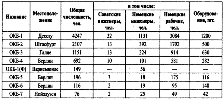 Раскладку германского персонала, работавшего на Минавиапром СССР к этому времени, дает следующая таблица:
